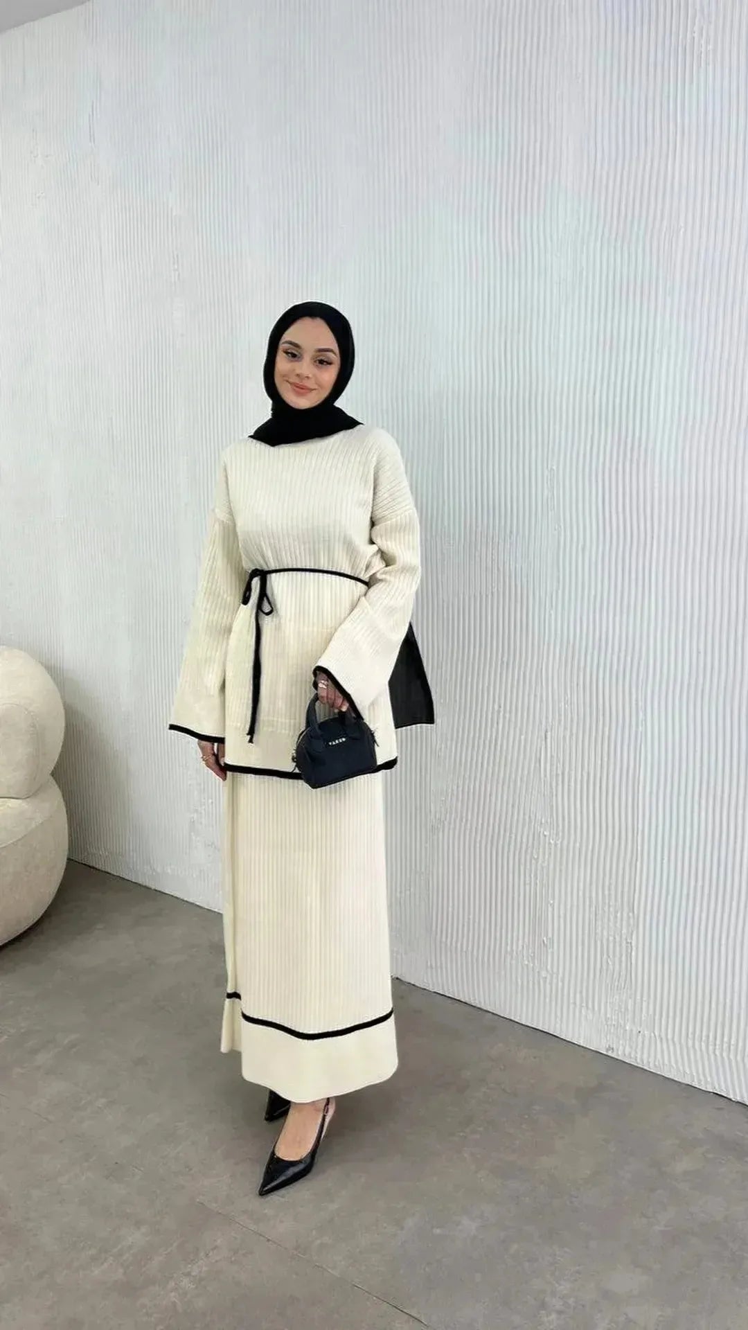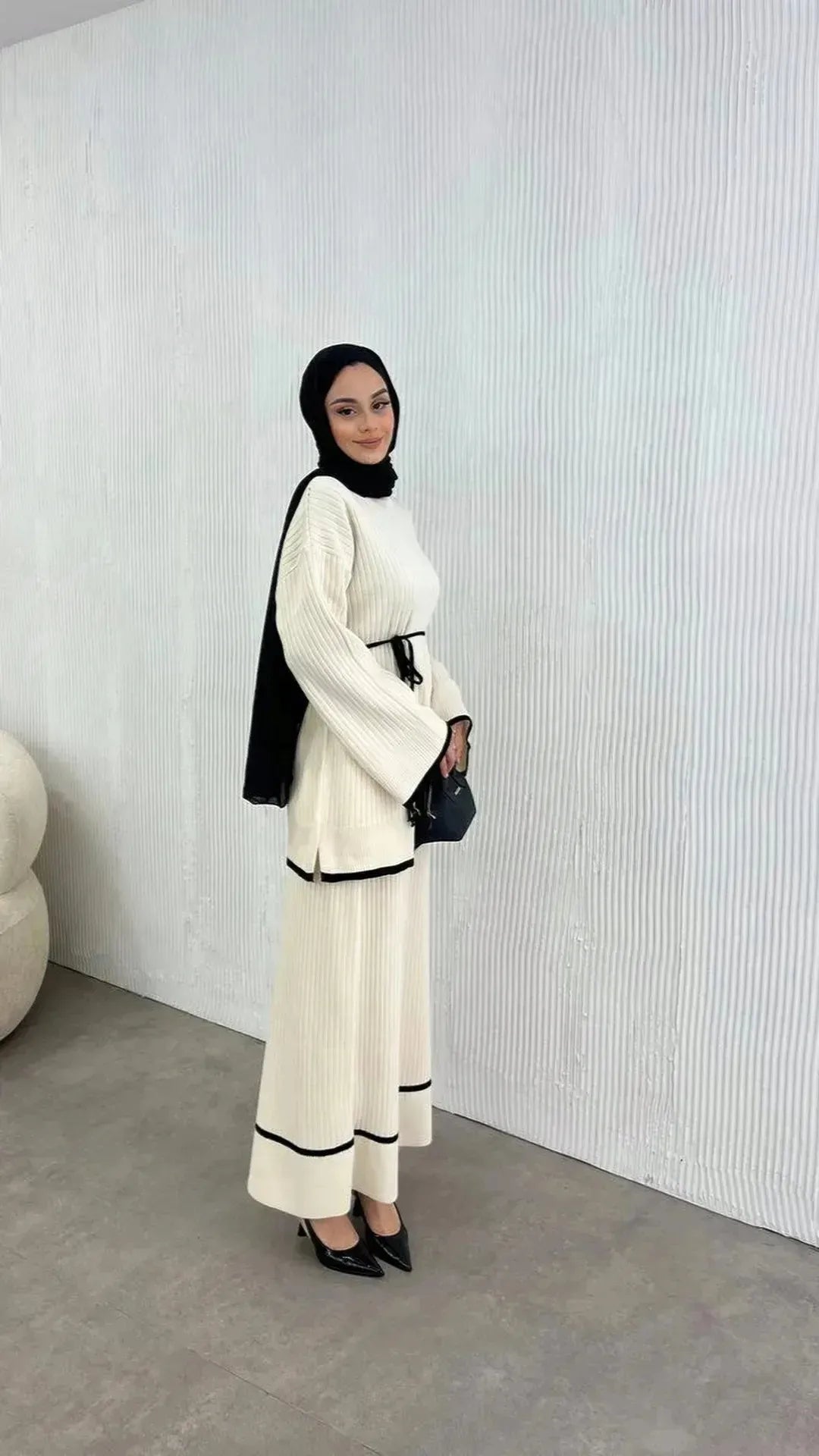 Damen Zweiteiler Strick-Oberteil/Rock Set